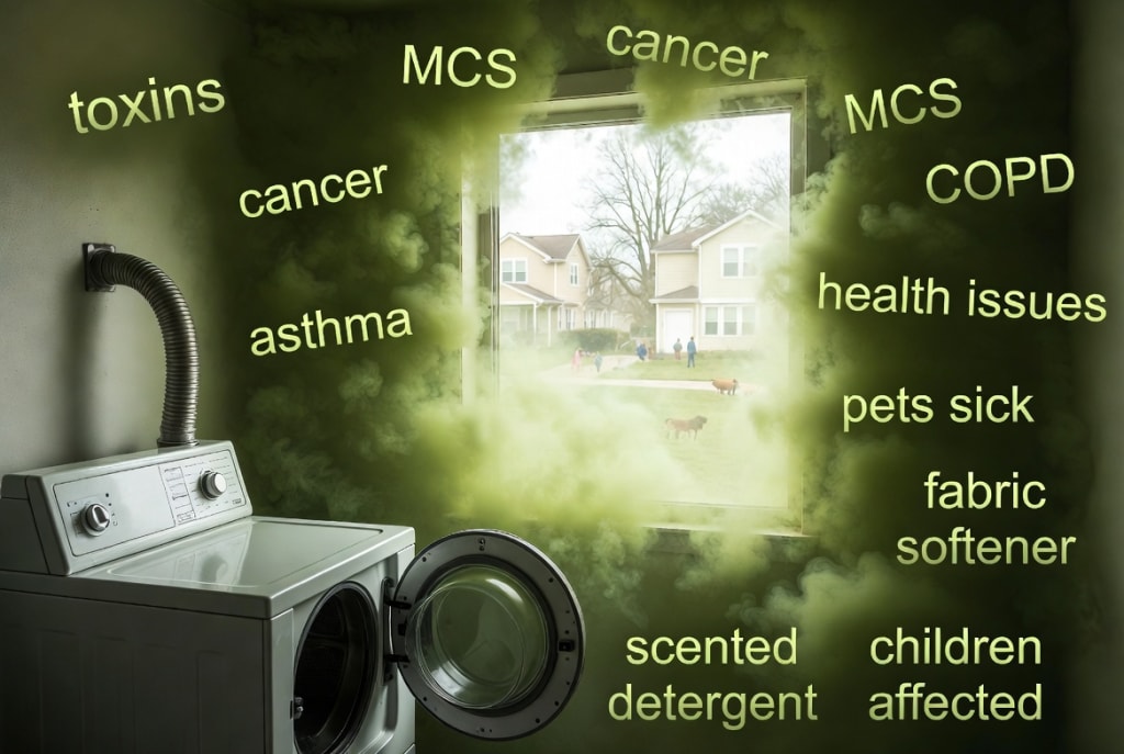 What most people do not realize is that MCS can make ordinary community spaces inaccessible. Laundromats. Parks near laundromats. Apartment buildings with shared ventilation. Neighborhoods where multiple dryers vent toward the same outdoor space.