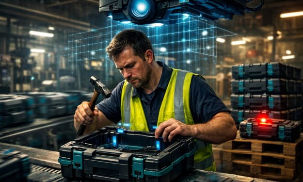 Before I packed up my life in England and headed for the sunny shores of Italy ✈️🇮🇹, my daily reality was measured in hundreds of black and teal plastic components. I worked in a plastic manufacturing plant—a place where, theoretically, simple forms and repetition rule the day. It was there, on the production line for Makita power tool cases, that I first realized Artificial Intelligence isn’t just for Silicon Valley developers 💻. It’s a technology that has already "put on its high-vis vest" and is working side-by-side with us on the factory floor. 🏭
