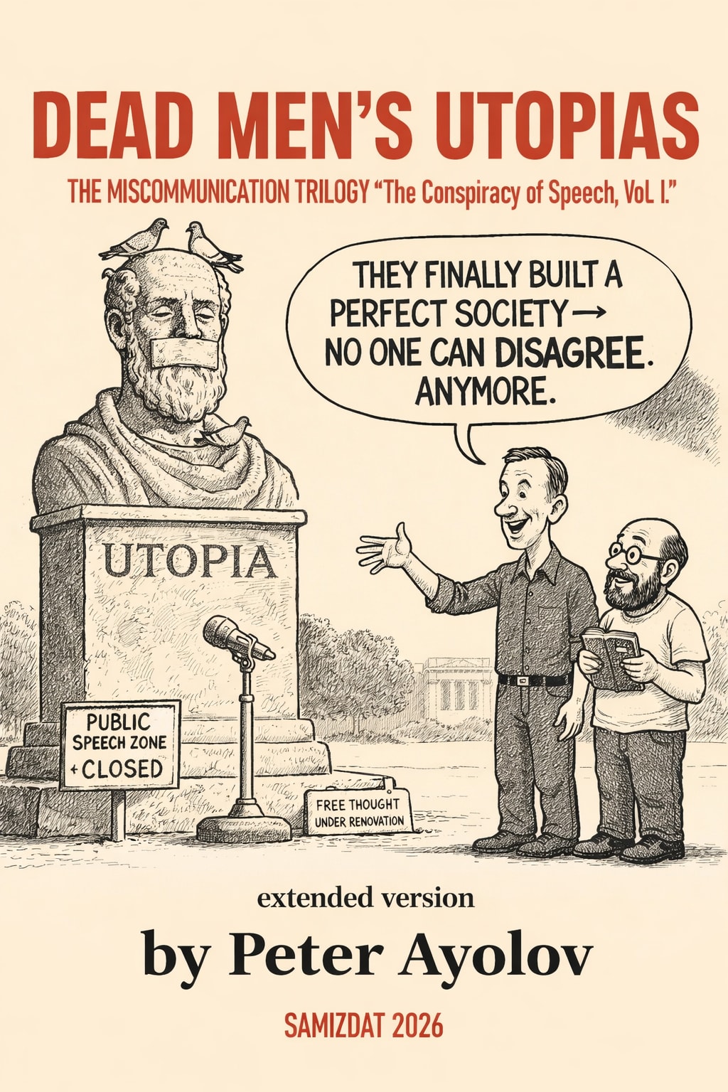 Dead Men’s Utopias by Peter Ayolov presents itself as the fifth part of Volume I, The Conspiracy of Speech, within THE MISCOMMUNICATION TRILOGY(The Planned Obsolescence of Language), yet its role within the structure of the work is more complex than a simple continuation. It is neither a conclusion nor a detached addition, but an expanded return to the beginning. The text revisits the foundational ideas of the opening part and rearticulates them in a broader, more elaborated, and conceptually intensified form. This repetition is not accidental and not redundant. It is structural. It reflects the very logic the book describes: that language persists, returns, and reshapes itself through accumulation rather than replacement. In this sense, the extended version is not simply longer; it is deeper, denser, and more recursive.