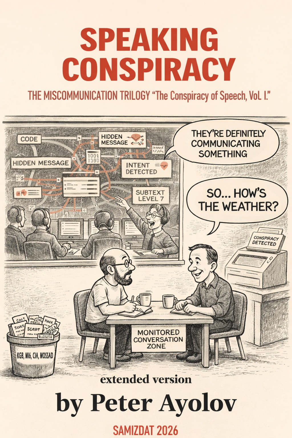 The chapter ‘Speaking Conspiracy’ from Part 6 ‘New Paradigm of Communication’ (extended version) of THE MISCOMMUNICATION TRILOGY, ‘The Conspiracy of Speech, Vol. I.’ reconfigures language as a self-organising system whose patterns of repetition, alignment, and circulation generate a conspiratorial structure without the need for intentional conspirators. It stands as one of the most conceptually dense and theoretically ambitious segments within the broader architecture of the work, offering a sustained interrogation of language not as a neutral medium but as a self-organising system that increasingly operates beyond the intentions of its users. What distinguishes this chapter from more conventional critiques of discourse is its refusal to locate manipulation solely in institutions, elites, or ideological apparatuses. Instead, it advances a more unsettling thesis: that language itself, under contemporary conditions, behaves conspiratorially—not through hidden coordination, but through visible, repeated, and normalised processes of alignment, circulation, and self-reinforcement.
