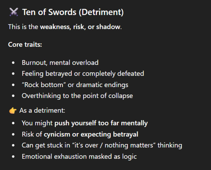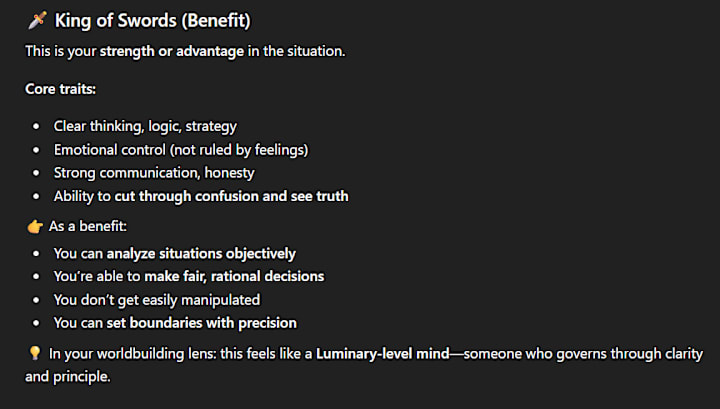 I asked the card what the benefits of that job would've been and what the downfalls.