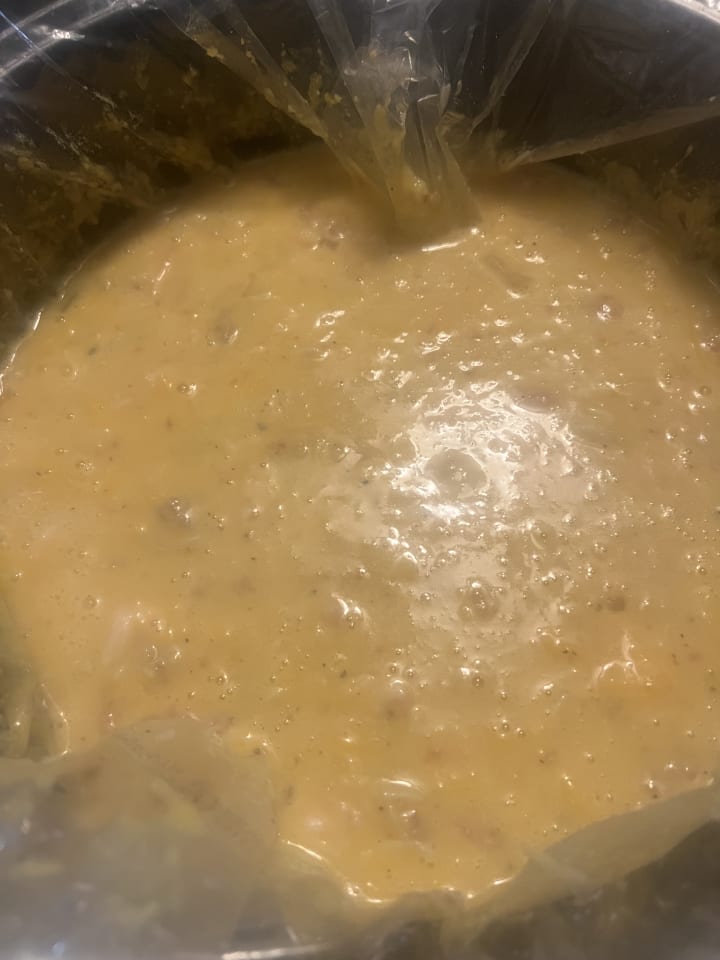 - Whisk your egg mixture until all of the ingredients are well mixed and the egg is creamy and well scrambled.