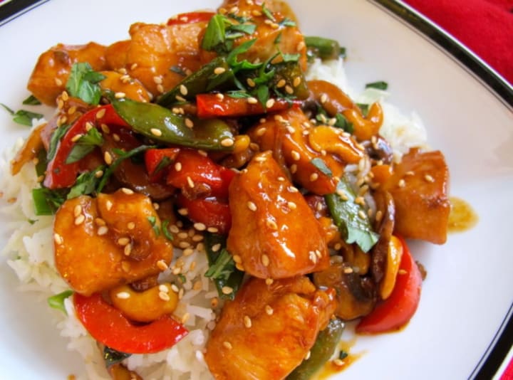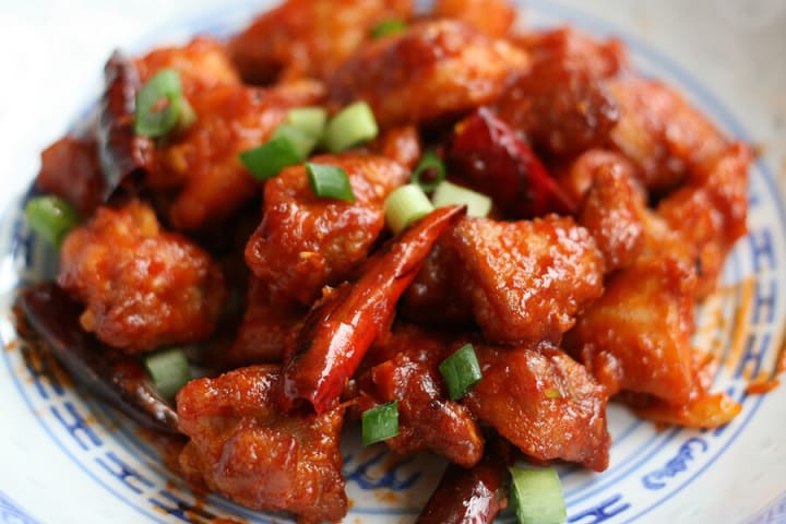 General Tso’s Chicken is a Chinese-American dish. It is a sweet and spice dish that is prepared with deep-fried diced chicken and then stir-fried with ginger, garlic, scallions, and hot chili peppers. The sauce consists of sugar, soy sauce, rice vinegar, and rice wine.