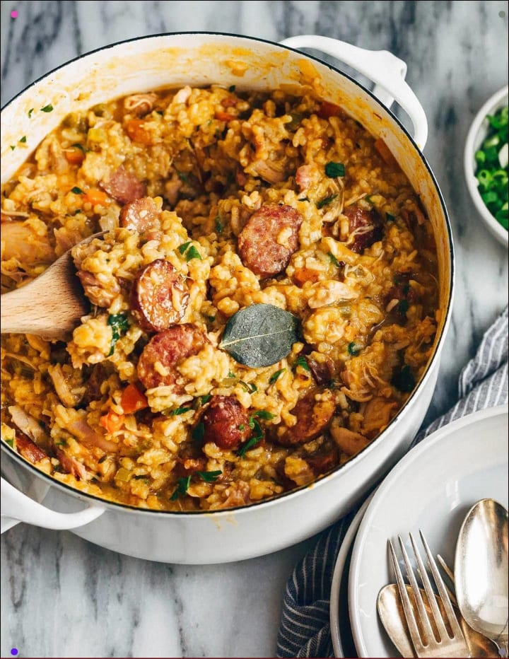 Chicken bog is a traditional southern dish. It is made with chicken, sausage, and rice. The chicken is cooked with water, salt, onions, long-grain rice, smoked sausage, chicken bouillon, and Italian-style seasonings.