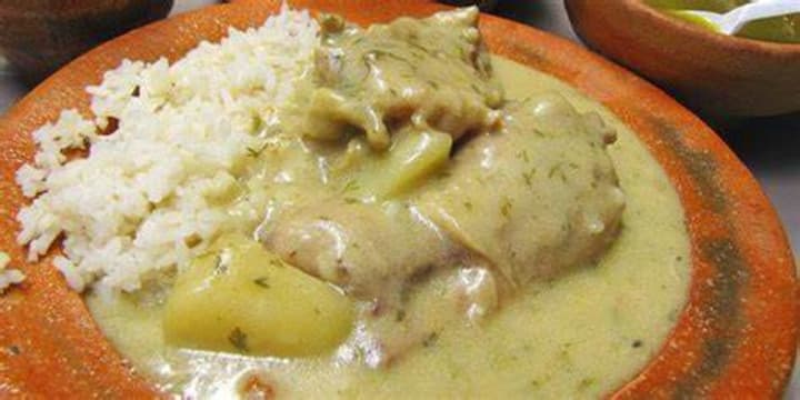Picante de pollo is a spicy dish that is made with chicken pieces, onions, potatoes, tomatoes, hot peppers, peas, and chicken stock. The thick sauce is flavored with cumin, garlic, and oregano.