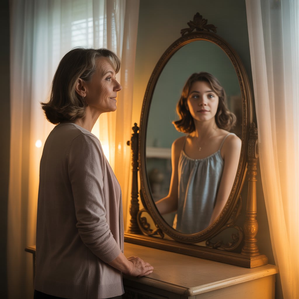 She walked toward the mirror hanging on the closet door. For a moment, I saw both of us reflected: the girl who believed she was infinite, and the woman who learned she was not.