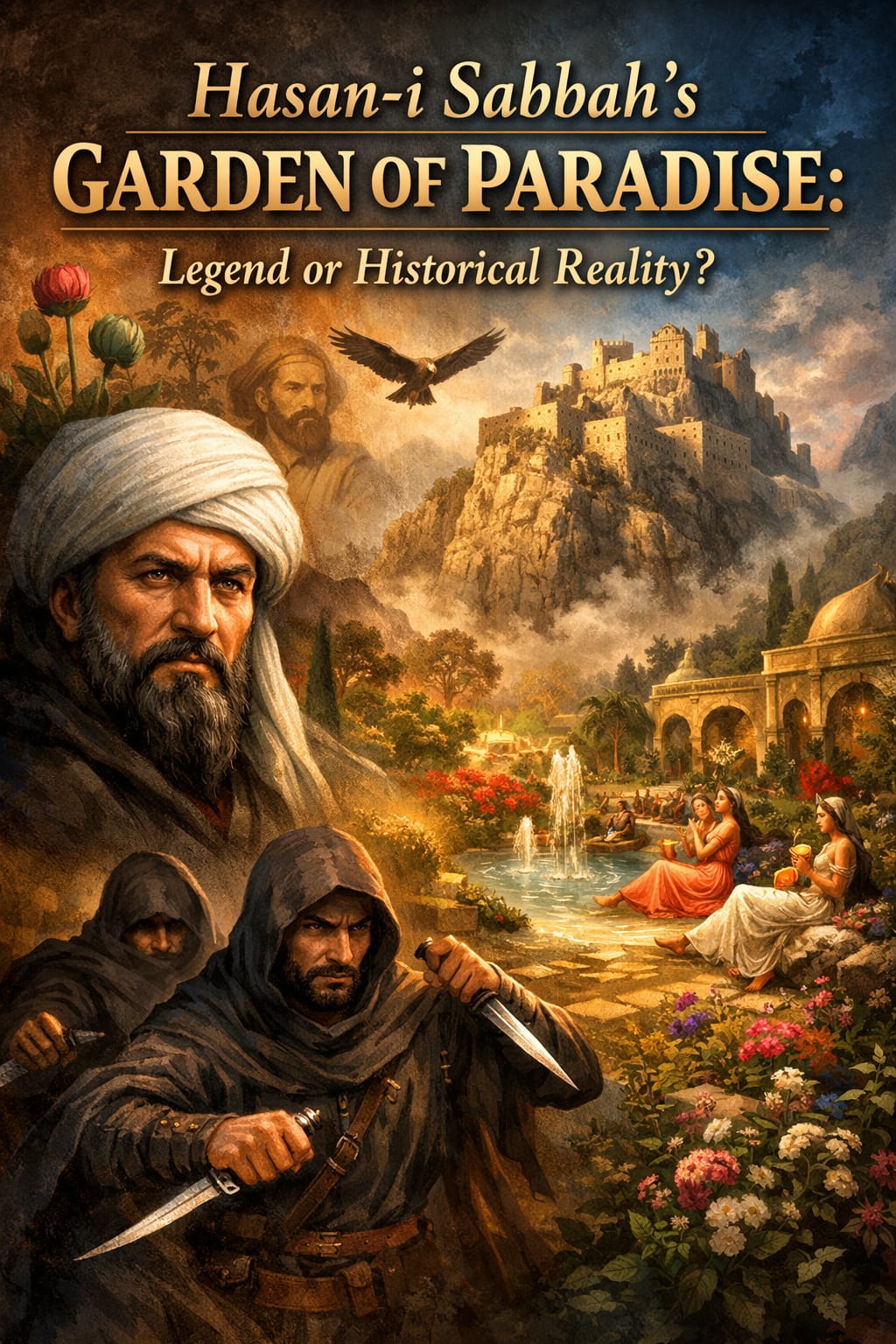 Among the many legends of medieval history, few stories are as fascinating and controversial as the tale of the “Garden of Paradise” associated with Hasan-i Sabbah. He was the founder and spiritual leader of the Nizari Ismaili movement in Persia during the 11th and early 12th centuries. From his mountain stronghold at Alamut Castle, Hasan-i Sabbah built a powerful and mysterious network of followers who became known in Western literature as the “Assassins.” One of the most enduring legends about him is the claim that he created a secret garden designed to resemble paradise, where young recruits were tricked into believing they had experienced heaven.