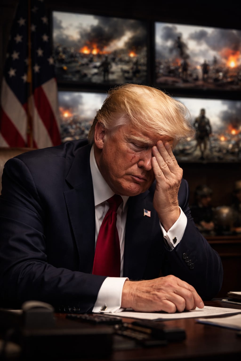 And somewhere, in a quiet room surrounded by advisors and flashing screens, Trump wipes away his tears. The weight of decisions, of consequences, of history itself, presses down on him. In that moment, he is not just a former president—he is a witness to a world unraveling.
