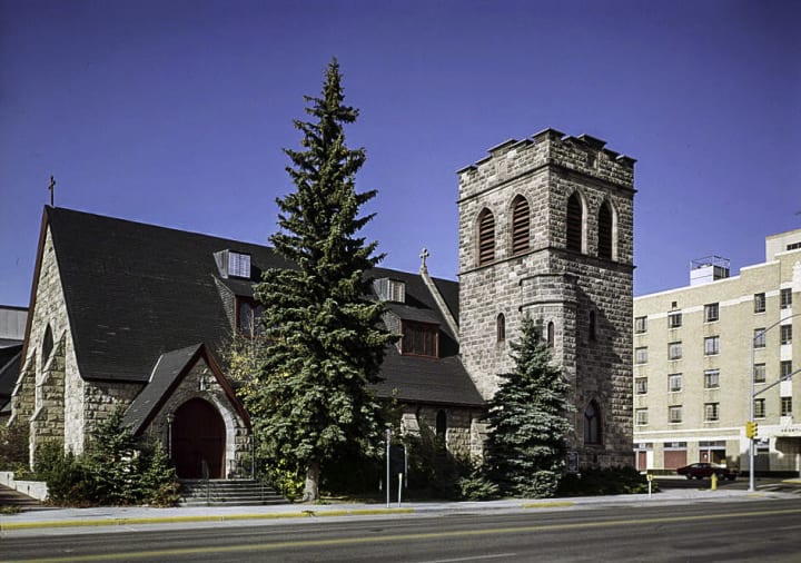 St. Mark’s Episcopal Church is located on Central Avenue in Cheyenne. The main part of the church was built in 1868. Then in 1886, people decided they wanted their church to look impressive sort of like the great British churches with large bell towers. So a foundation for the bell tower was sunk 15 ft. deep to be able to support the 60 ft. massive structure that would be built. However, the building of the tower came to a stop for a long time because the masons working on the tower disappeared.
