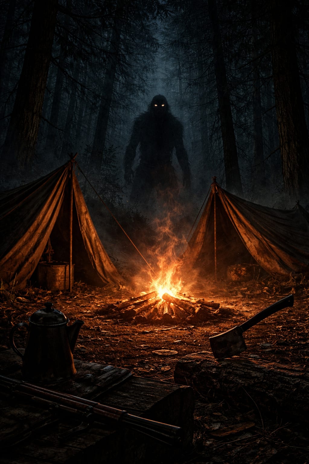 That night, they heard it for the first time. Footsteps... Slow and heavy. Plodding through the forest and encircling their camp. Not like a four-legged animal, not quite. The sound had a rhythm or cadence to it. Deliberate and measured. Almost like something walking on two legs.