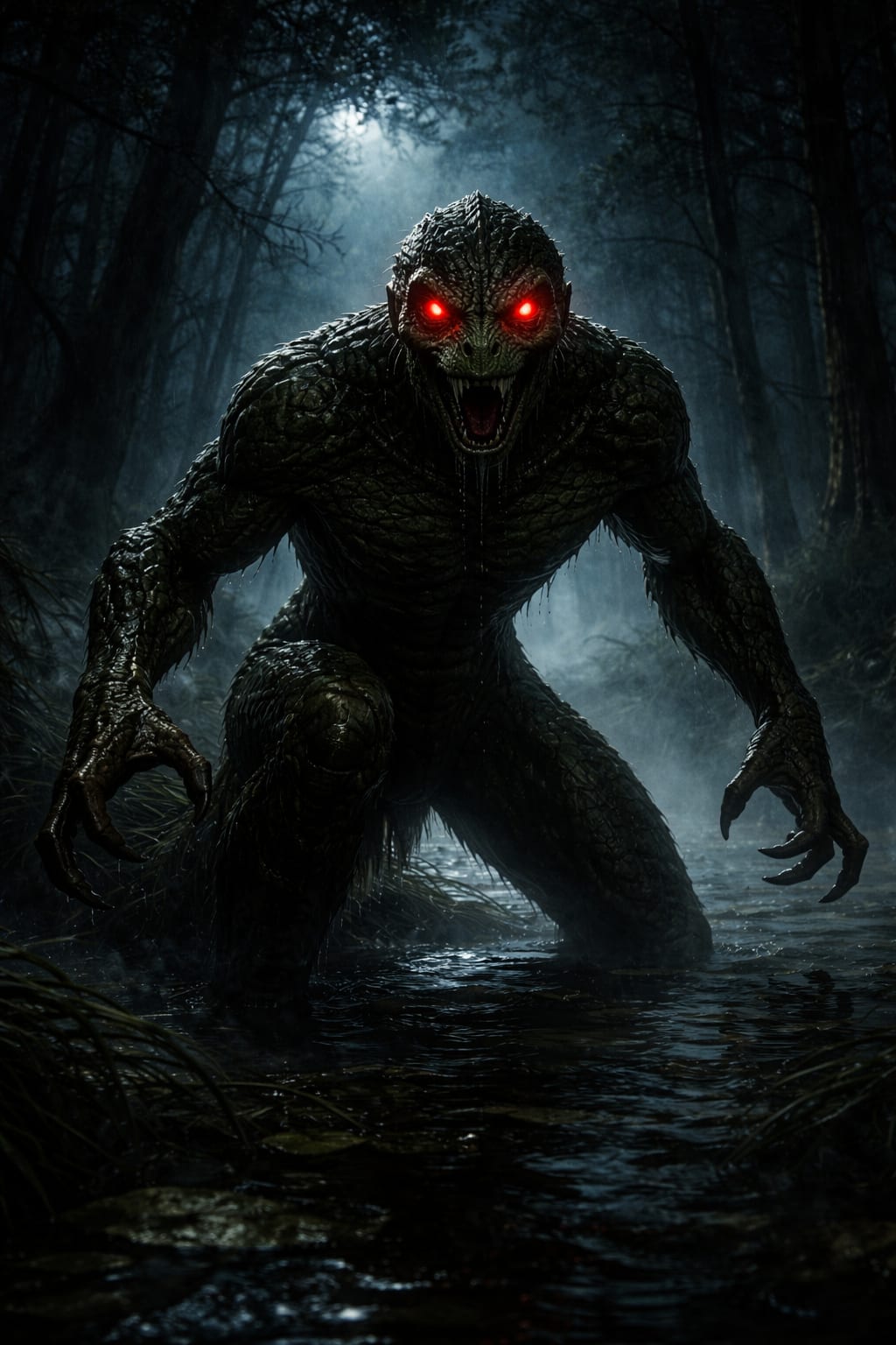Imagine it. You’re alone and your car breaks down. You step out into the humid night and look around. The swamp seems to breathe around you. And then, you hear it. Something moving through the trees. Not slithering or crawling, but walking. Right toward you. Fast. It's enough to make the hairs on your body stand on end.