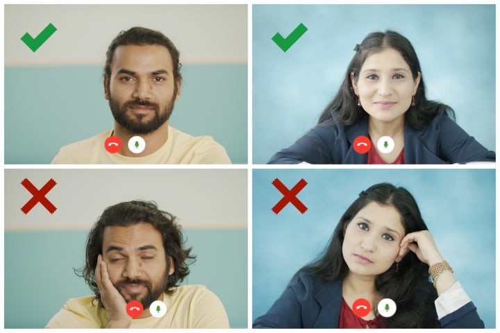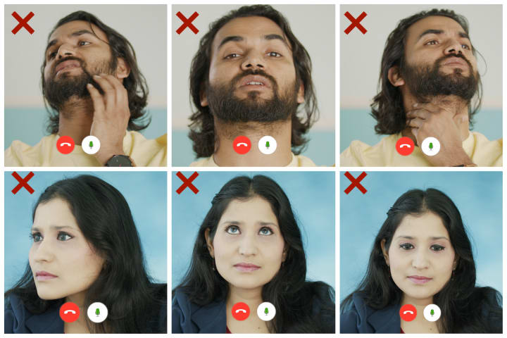3) Eye gaze: Look toward the camera as much as possible. Looking in a different direction can feel extremely disconnected, without you even realizing. This is common when you are using a video calling gadget such as Portal on the side while you have a laptop or desktop in front of you. It’s easy to forget that participants could be talking to your side-profile.