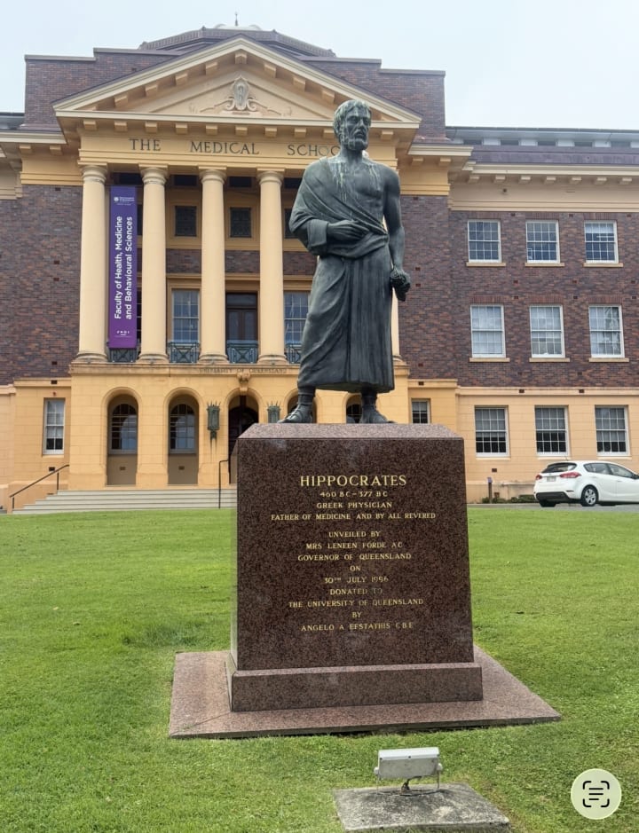 I circled Hippocrates statue three times in honour of the land the hospital stands upon and the hidden ones who bless or curse accordingly.