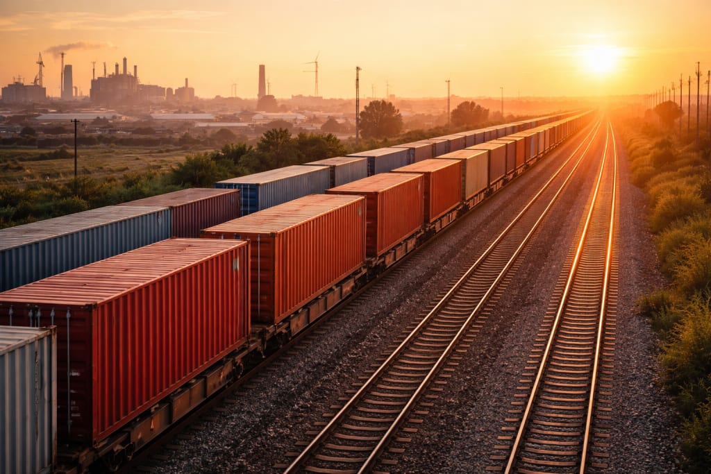 The train didn’t stop, it never does. It thundered past, carrying containers stacked like silent promises across continents, through cities still asleep and industries already awake. Steel wheels on steel rails, a rhythm older than highways, yet more relevant than ever.