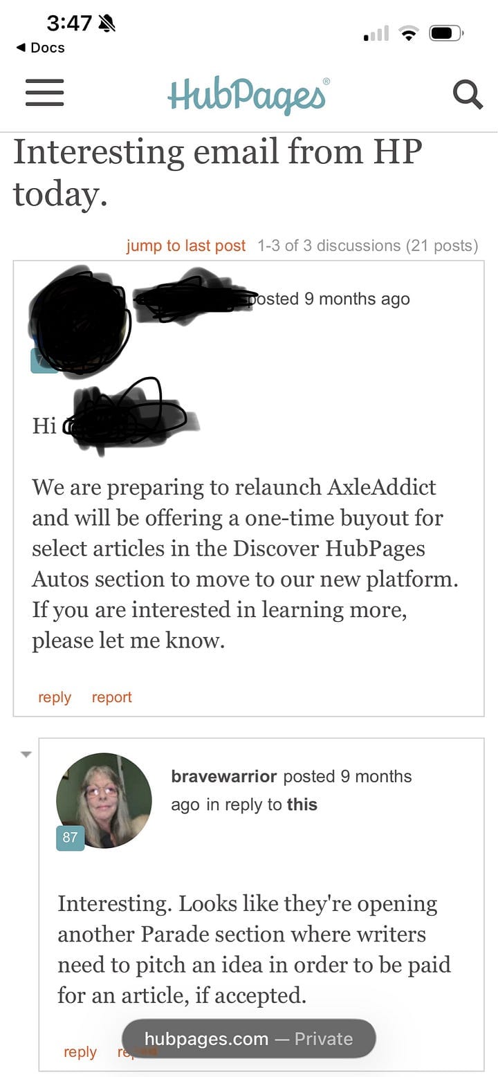 Months later, HubPages ended most of its niches, and the remaining ones were spun off as new standalone endeavors as part of TAG’s growing list of properties. Another user started a forum thread about how he was offered money for his AxleAddict articles. Initially, AxleAddict was shuttered. For some reason, TAG decided to bring it back. Why did TAG resurrect it?