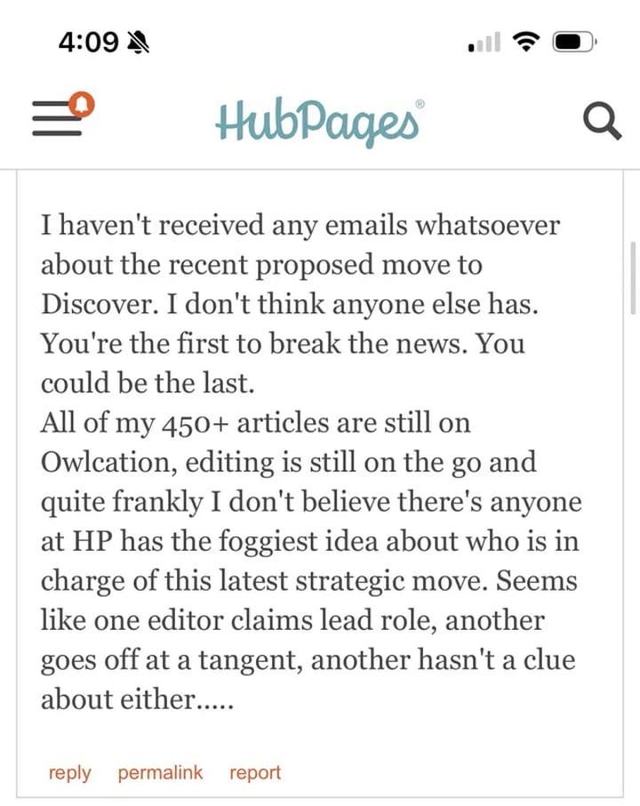 Chef-de-jour was one of the most polished authors on HubPages. He had hundreds of articles on Owlcation, an education-centered niche. He brings up salient points: evidence of chaos and a lack of communication behind the scenes.