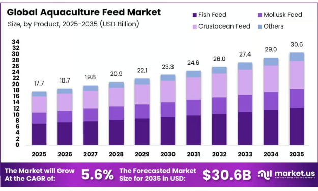 Aquaculture Feed Market Encouraged Growth To USD 30.6 Billion by 2035 at 5.6% CAGR. AI-Generated.