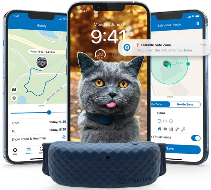 The GPS Tracker for Cats is a revolutionary accessory that allows cat owners to keep track of their furry friends' whereabouts in real-time. With a subscription plan starting at $5 per month, cat owners can monitor their cat's activity levels, location history, and even set safe zones using the virtual fence feature. The GPS tracker collar attachment is designed for medium-sized cats or larger (9lb+), and it is 100% waterproof, making it perfect for cats who love to explore outdoors. The Tractive GPS Tracker for Cats offers worldwide location tracking, allowing cat owners to keep an eye on their pets no matter where they are in the world. The device's all-day activity monitoring feature enables cat owners to track their cat's active time, rest, and calories burned, making it easier to keep them in good shape. The Tractive GPS Tracker for Cats is managed via the free Tractive GPS app for iOS and Android, making it easy to use and access all of its features. Cat owners can subscribe to monthly, yearly, two-year, or five-year plans and try the device risk-free with a 30-day money-back guarantee. Overall, the Tractive GPS Tracker for Cats is an advanced and reliable accessory that any cat owner can invest in to keep their furry friend safe and happy.