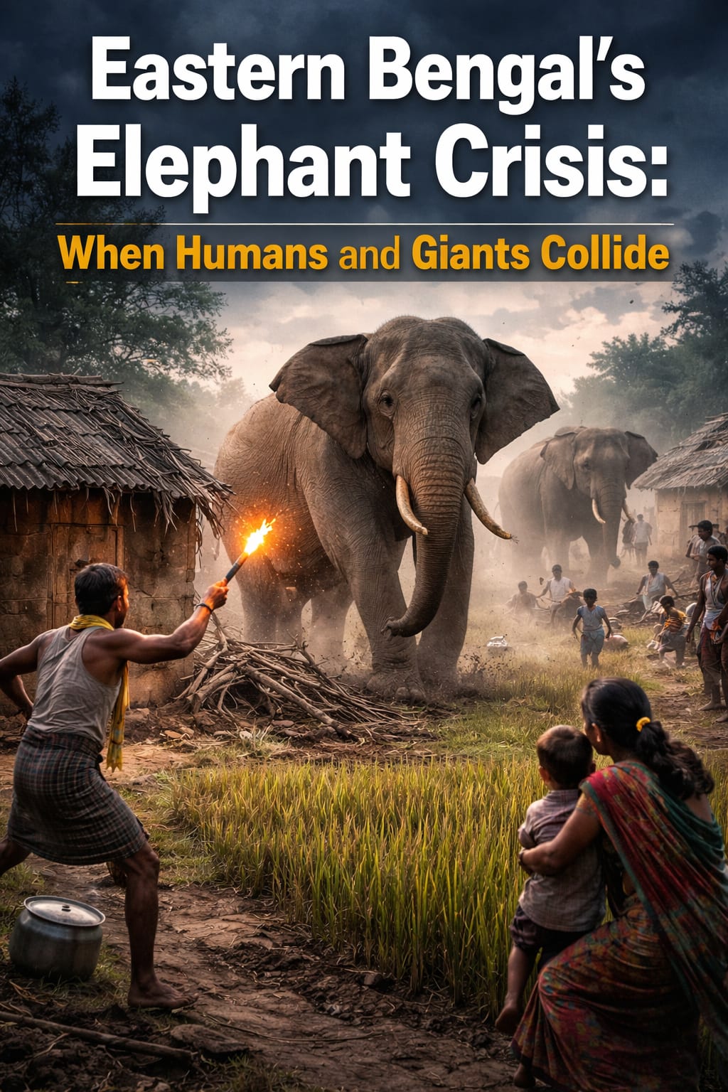 In the lush and fertile landscapes of Eastern Bengal, where rivers weave through green fields and forests once stretched endlessly, a growing crisis is unfolding. Villagers across the region are increasingly troubled by wild elephants that wander into human settlements, destroying crops, damaging homes, and sometimes even causing tragic loss of life. What was once a rare encounter has now become a frequent and alarming reality.
