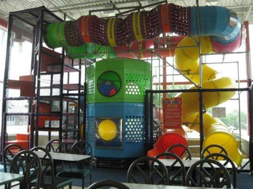 Sitting high in the play place tubes,