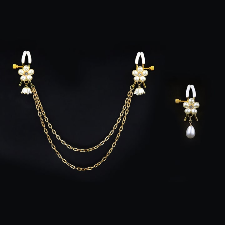 Just a gold-toned chain, a few pearl accents, nothing excessive.