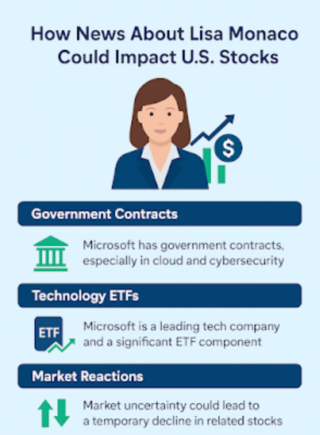 While not every headline about Lisa Monaco will move the stock market, investors in Microsoft, tech ETFs, and government-related companies should pay attention. Short-term volatility is possible, but careful analysis of the news’s actual impact versus speculation can help investors make informed decisions.