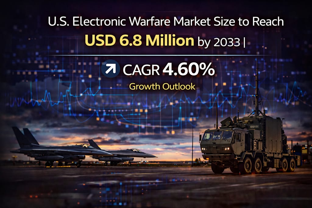 The U.S. electronic warfare market continues to evolve as modern defense strategies increasingly focus on controlling and securing the electromagnetic spectrum. As of recent estimates, the market is valued at USD 4.8 Million in 2025 and is expected to reach USD 6.8 Million by 2033, growing at a compound annual growth rate (CAGR) of 4.60% from 2025 to 2033.