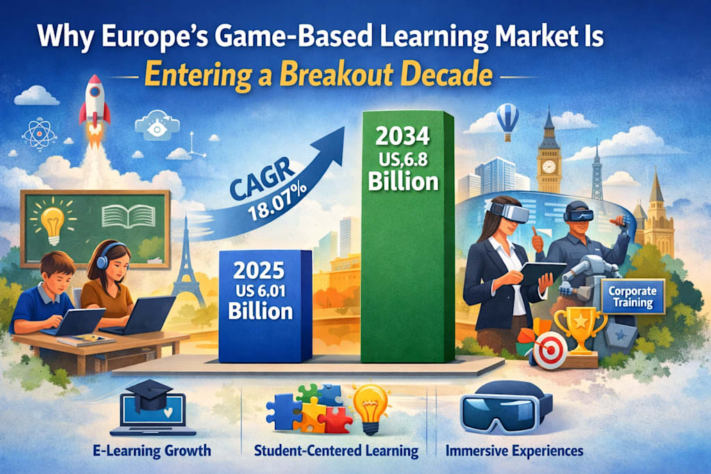 According to the market outlook you provided, the Europe Game-Based Learning Market is expected to rise from US$ 6.01 Billion in 2025 to US$ 26.81 Billion in 2034, expanding at a CAGR of 18.07% from 2026 to 2034. That kind of growth is not accidental. It reflects a deeper transformation in how Europe is preparing learners for modern academic, professional, and digital realities.
