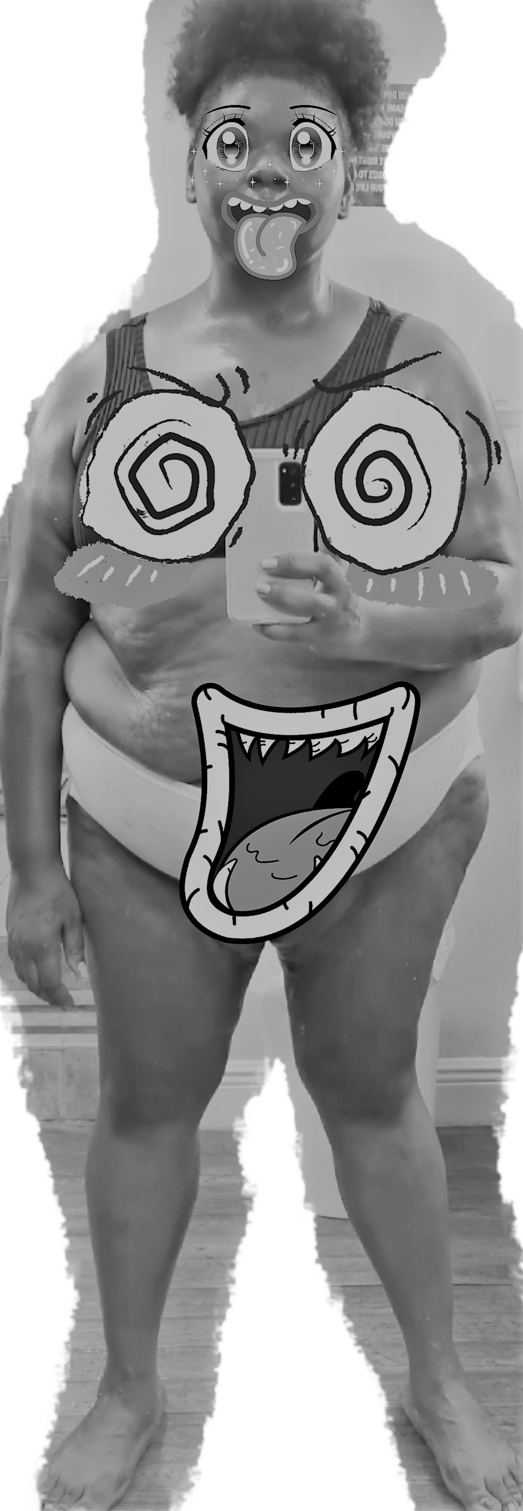 I’d talk about what the hundreds of pounds of excess are supposed to be concealing but I am tired of fat people and all our sob stories. Right now it’s just me and my body , alone in the daylight, completely absorbed by this beautiful disaster standing before myself.