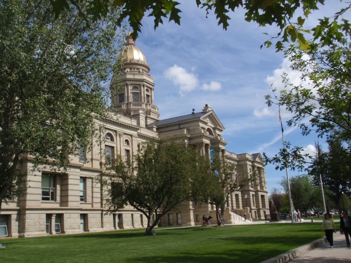Wyoming State Capital right in the heart of the city is the state's seat of government. It was built between 1886 and 1890 and has a golden dome over forty meters high. You can admire the Renaissance Revival-style building from the outside and take a tour of the stately rooms and legislative chambers inside. There are decorative furnishings, colorful murals, and marble. Its most remarkable features are the stained-glass dome and rotunda. It is a National Historic Landmark surrounded by landscaped lawns.