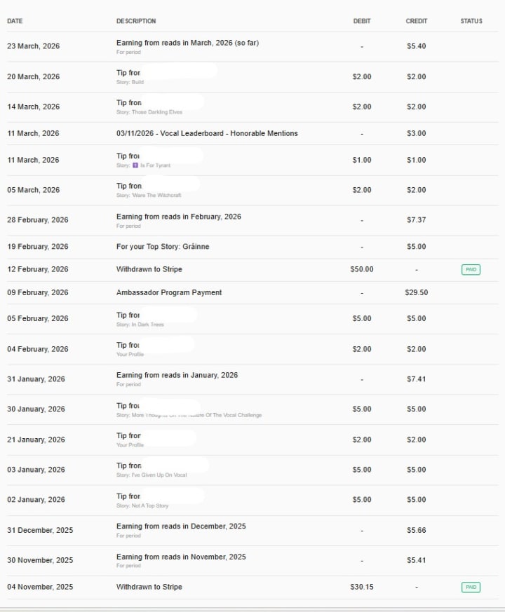 The implication is I am being ghosted by Vocal, but I am getting the money from Vocal reads, tips and the ambassadors. At the moment, I feel I will never get another Top Story, Challenge or Leaderboard place, but that will not stop me from writing and publishing.